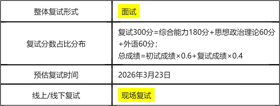 客观分析一波,华东师范大学教育管理学系非全日制MPA复试整体淘汰率极低(仅1%),复试时间预计在 2026 年 3 月 23 日左右,查分后准备时间相对紧张,大家需要提前规划复试备考,避免临时抱佛脚。整体上复试以线下面试为主,包含综合能力、思想政治理论、外语三个核心板块,且专业课无官方指定参考书,备考需侧重知识积累和实践结合。
