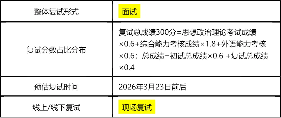 客观分析一波,华东师范大学非全日制MPA复试整体淘汰率极低(仅0.42%),复试时间预计在 2026 年 3 月 23 日前后,查分时间和复试时间间隔较短,大家需要提前筹备复试,避免临时抱佛脚。整体复试形式为线下面试,无笔试环节,同等学力考生需加试两门笔试科目(开卷),但不计入复试总分,仅需合格即可。