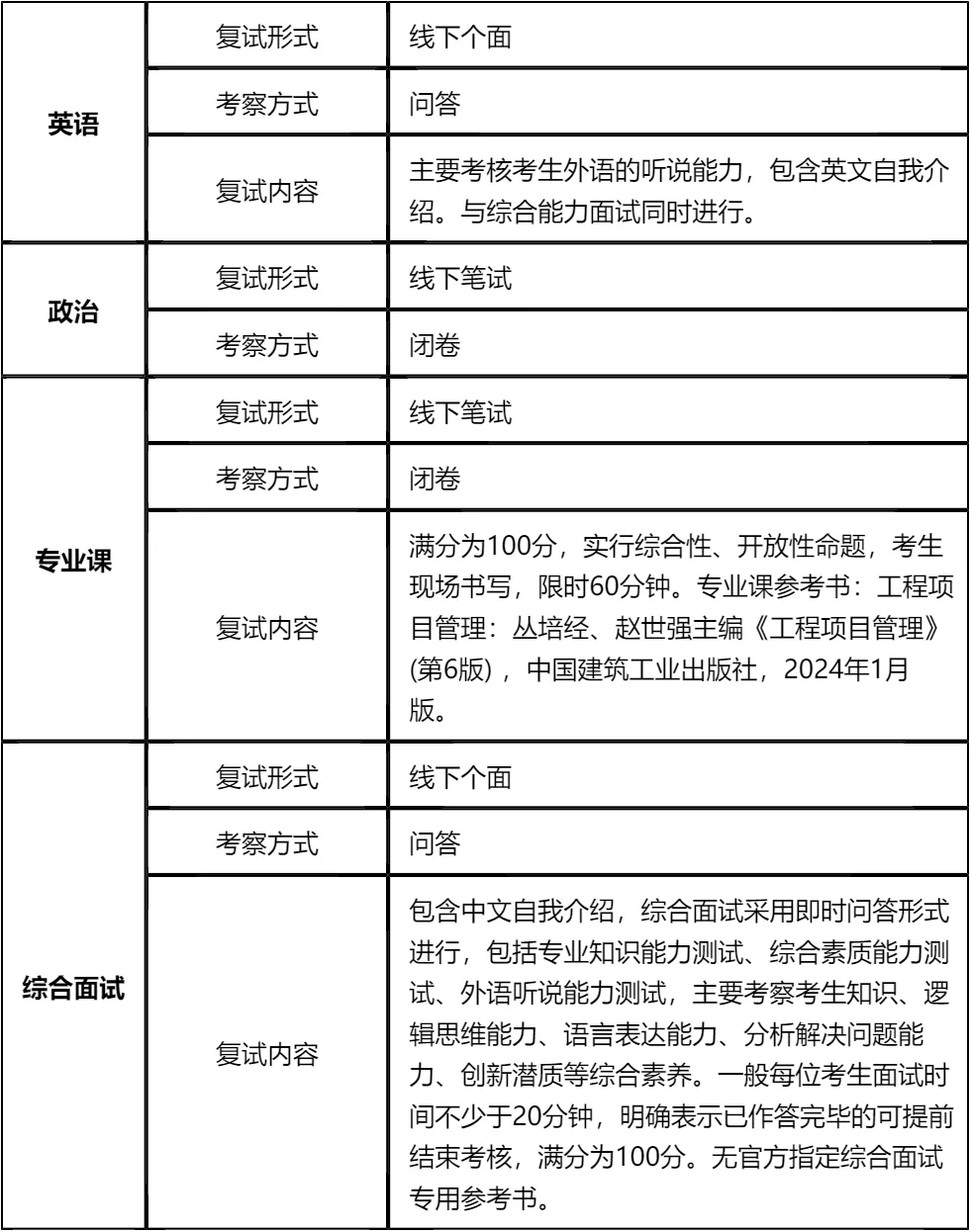 综合面试中,外语听说能力与专业知识、综合素质同步考察,英文自我介绍需简洁明了,突出个人优势和报考动机;中文问答需聚焦工程管理实际问题,展现逻辑思维和解决问题的能力,尤其是项目经历相关的提问,要提前梳理清楚个人职责和成果。