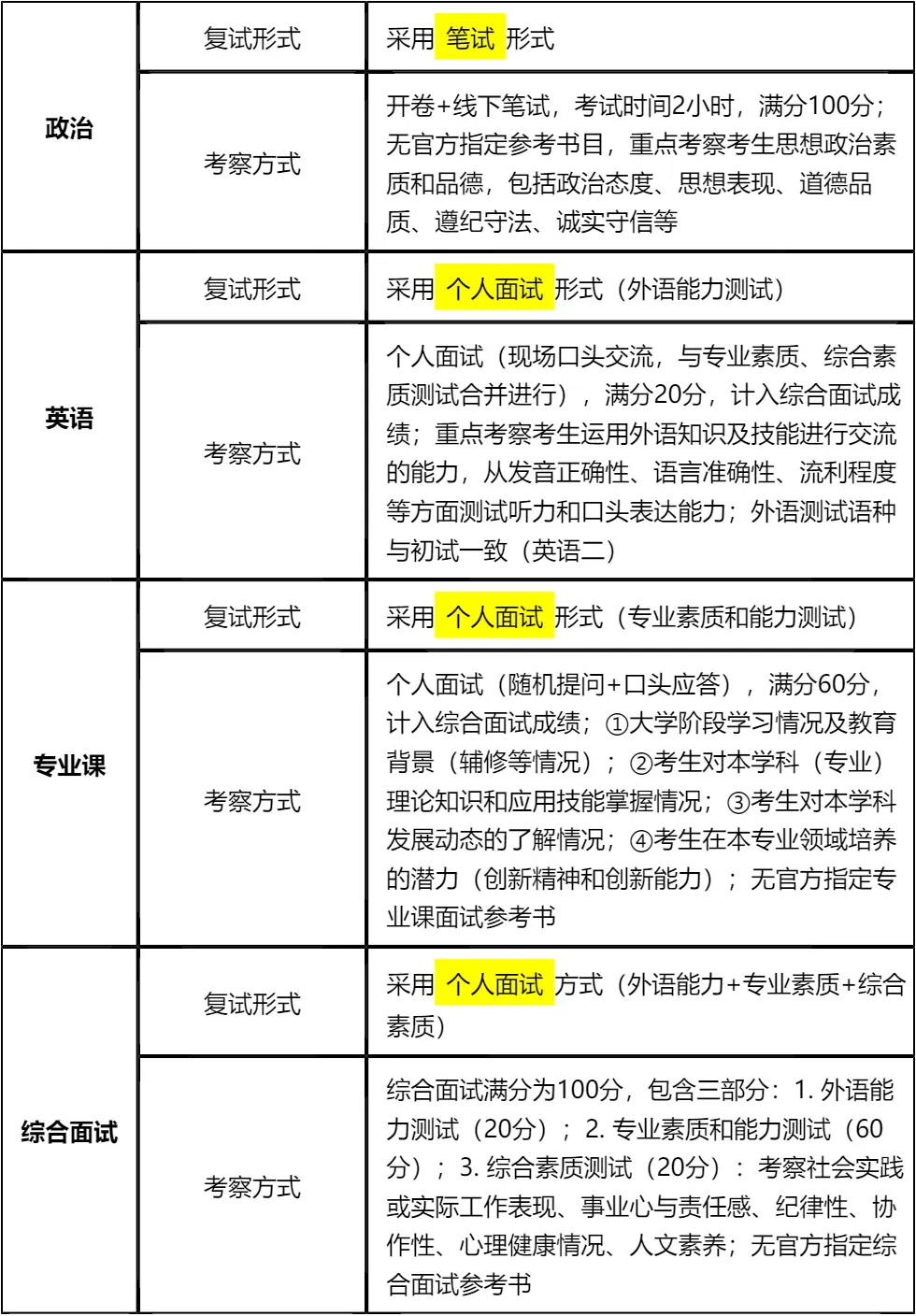 二、 各个学科的复试考察细节