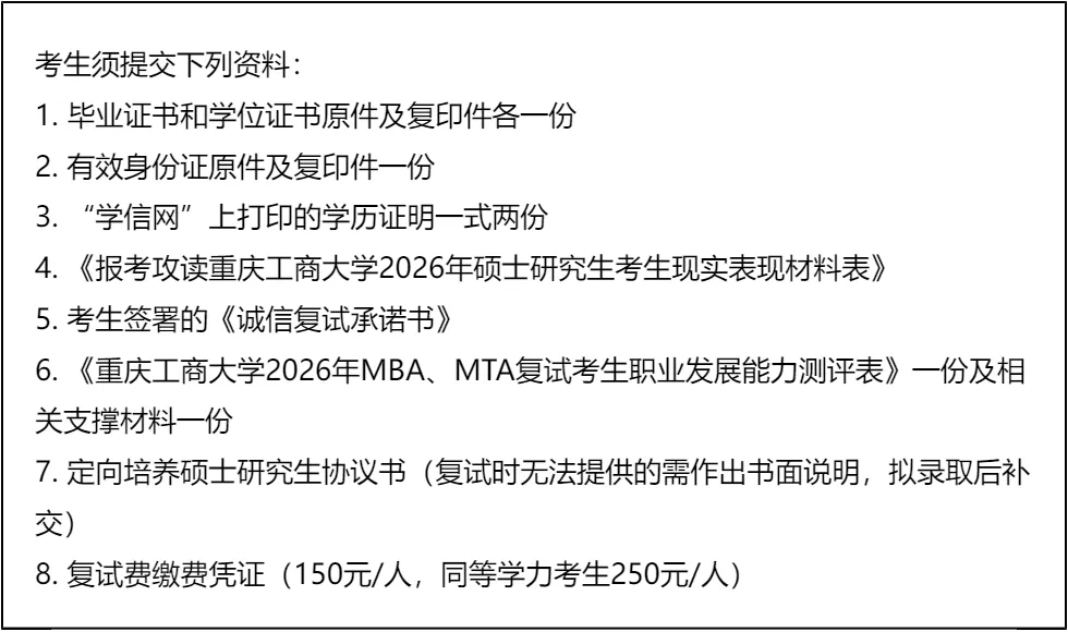 三、 复试资格审查需要准备的材料