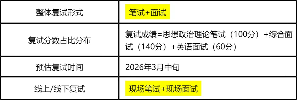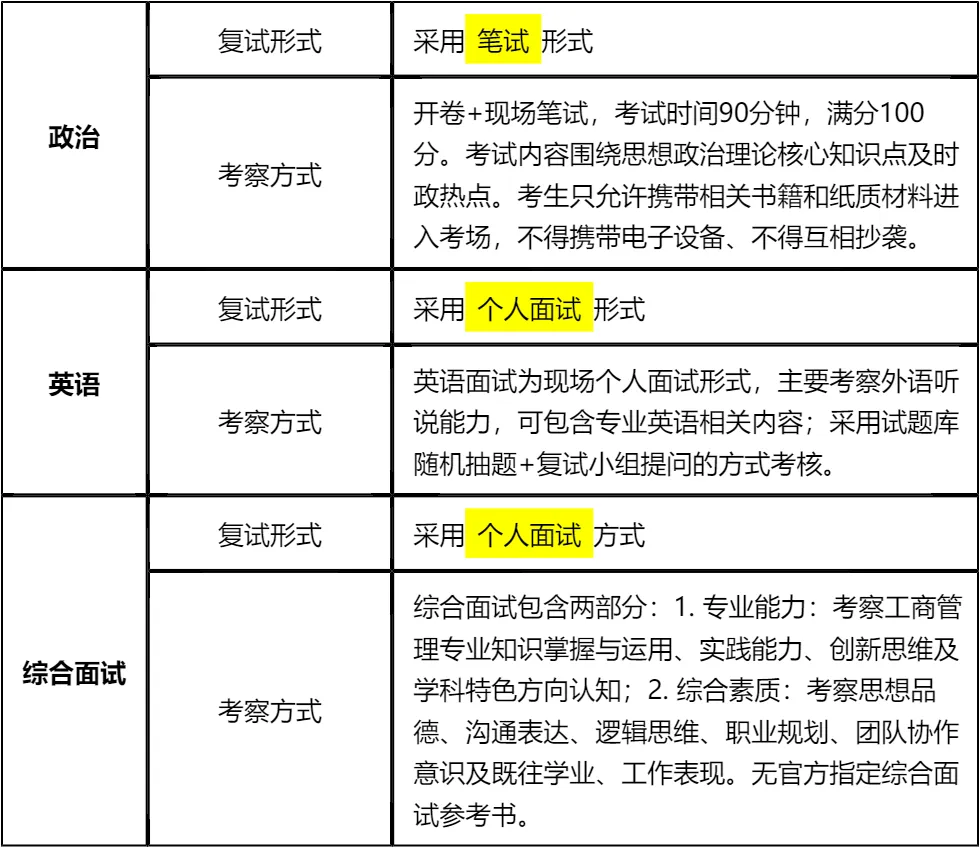 客观分析一波,中国计量大学MBA非全日制复试整体淘汰率不高,复试时间预计在 2026 年 3 月中旬左右,查分时间和复试时间只间隔了30天,所以大家需要提前准备复试,防止出分后时间紧张,整体上复试以面试+笔试为主,其中面试形式为个面,需要提前学习个面的面试技巧。