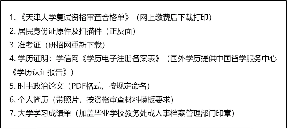 三、 复试资格审查需要准备的材料
