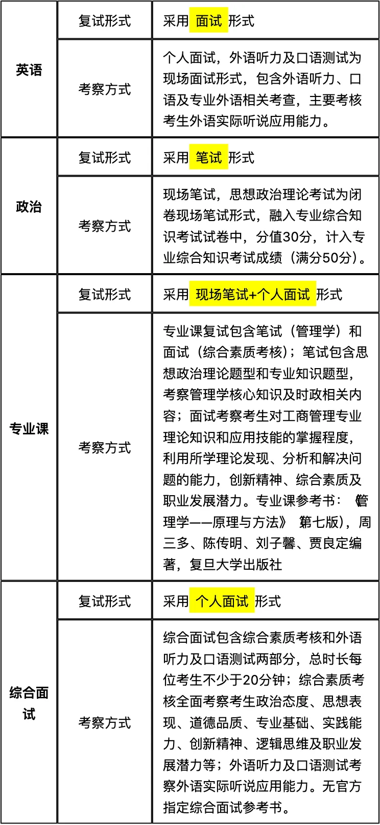 二、 各个学科的复试考察细节