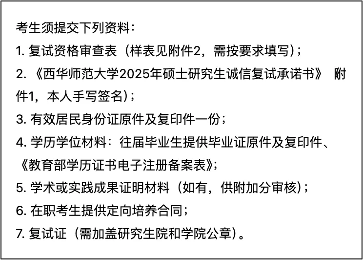 三、 复试资格审查需要准备的材料