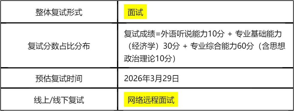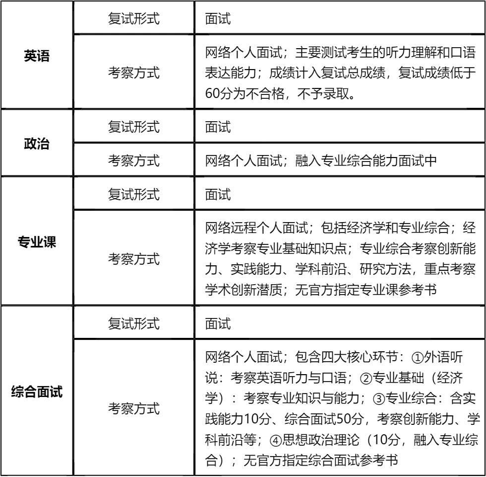 复习建议:复试成绩由外语听说、专业基础(经济学)、专业综合(含思想政治理论)构成,无官方指定参考书,真题和核心考点背诵是关键。我把涵盖英语、政治、专业课、综合面试的全科目真题及备考资料都放在文末了,大家下载后重点背诵高频考题,集中10天即可完成核心内容背诵!无需盲目备考,聚焦重点模块,结合自身工作经历准备案例分析,文末资料务必认真研读,复试通过率会大幅提升!!!