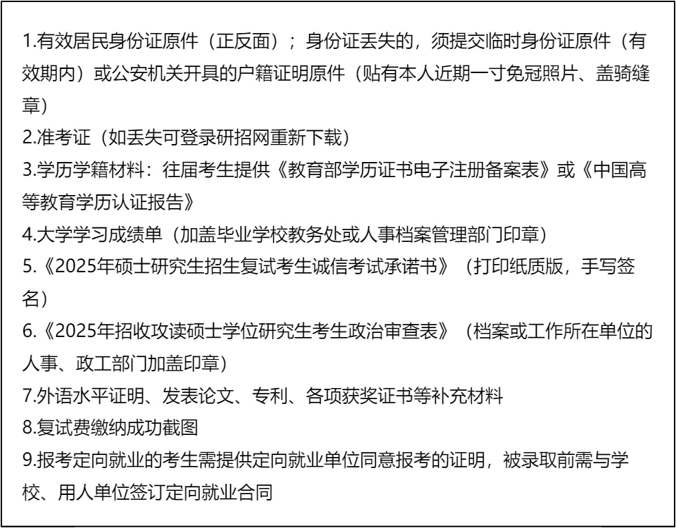 三、 复试资格审查需要准备的材料