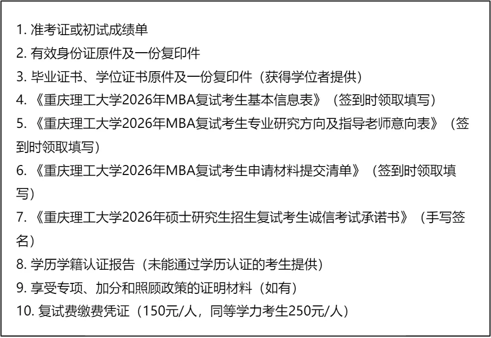 重庆理工大学MBA复试内容分析/成绩计算/资审材料