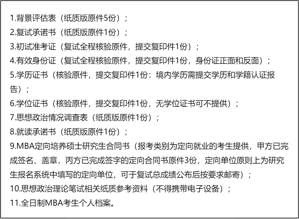 三、 复试资格审查需要准备的材料