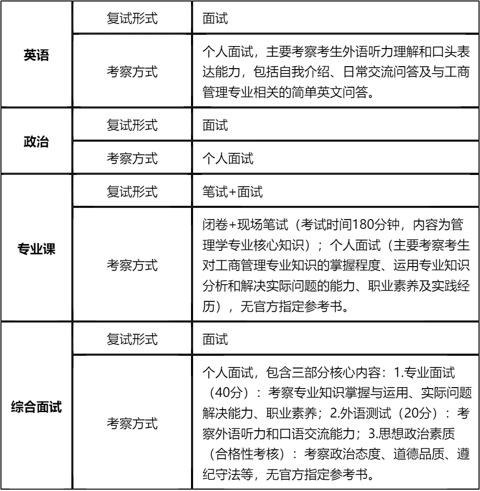 复习建议:核心复习重点是管理学核心知识(应对专业课笔试)和复试真题(应对各板块面试),文末已整理涵盖英语口语、政治、专业综合面试的完整资料,建议下载后集中背诵,重点攻克高频考点。由于无官方参考书,需围绕管理学核心概念搭建知识框架,同时结合真题强化应用能力,合理分配笔试和面试的备考时间,避免偏科,只要聚焦重点、高效复习,通关概率很大!!!