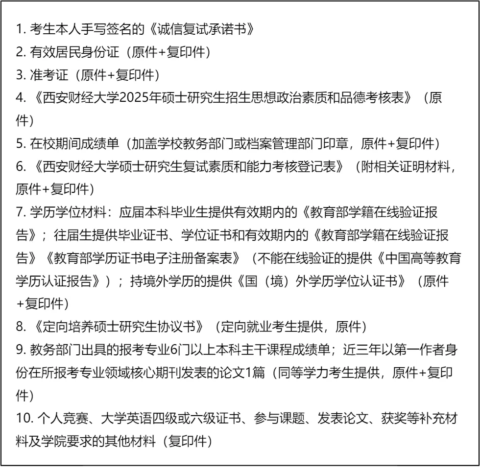 三、 复试资格审查需要准备的材料