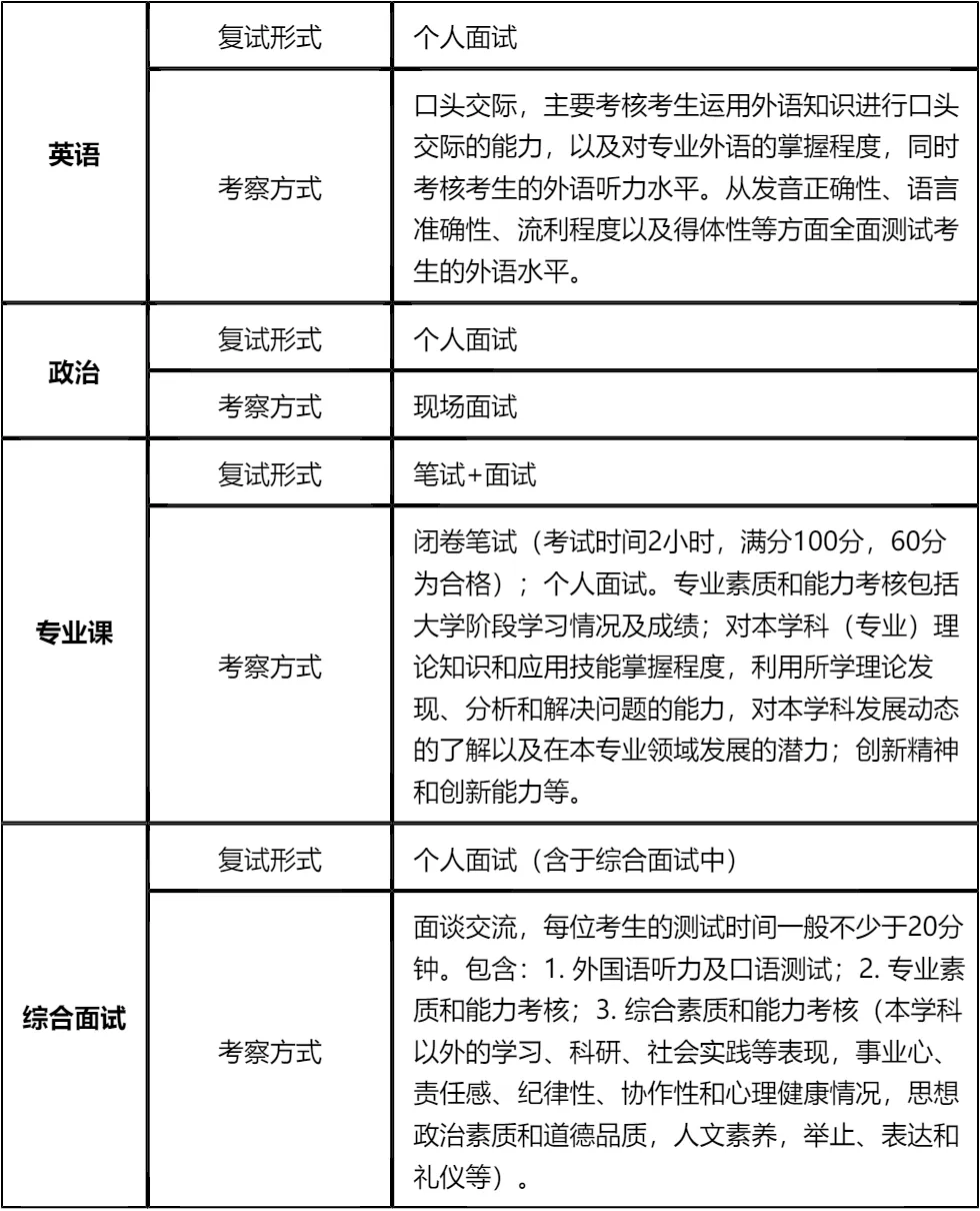 其次,复试形式包含笔试和面试,专业课有明确参考书,需提前系统复习教材知识点,结合真题强化训练;英语注重口头交际能力,需多练习对话和专业外语表达;综合面试考察维度全面,需提前梳理个人经历、职业规划,展现综合素质。