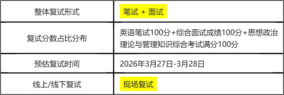 客观分析一波,山东理工大学全日制MBA复试整体淘汰率30%(中等水平),复试时间预计在 2026 年 3 月 27 日-3 月 28 日,查分后到复试时间相对充裕,但复试涉及英语笔试、政治笔试、专业课笔试+面试、综合面试多个环节,考察内容全面,需要系统规划备考。其中英语笔试有明确合格线(30分),不合格直接不予录取,需重点关注。