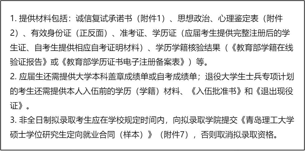 三、 复试资格审查需要准备的材料
