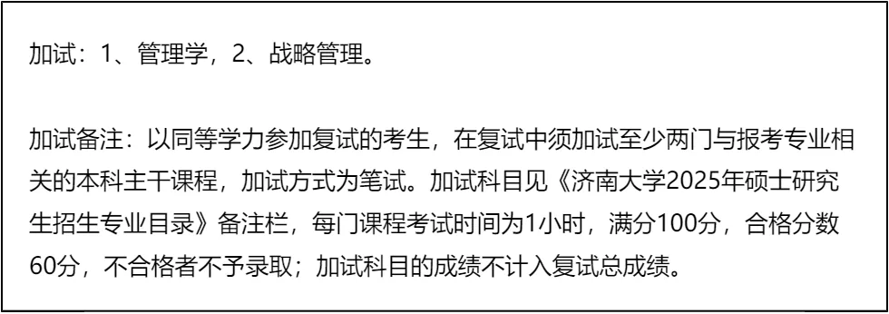 客观分析一波,济南大学MBA非全日制复试整体淘汰率仅2%(极低),复试时间预计在 2026 年 3 月 19 日,查分时间(2026年2月24日)和复试时间只间隔了23天,时间非常紧张,必须提前启动复试准备。复试形式为笔试+面试,包含政治、专业课闭卷笔试和英语、综合面试,多个环节都有合格分数线要求,不合格直接不予录取,不能掉以轻心。