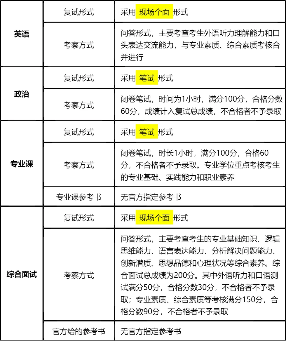 复习建议:优先攻克有合格线要求的科目(政治、专业课、英语听说),真题是核心复习资料,我把涵盖复试英语口语、政治、专业综合面试的全部真题都整理在文末了,下载后重点背诵高频考点和答题思路,集中精力冲刺10天即可全面覆盖核心内容!复试考察内容虽多,但重点突出,无需盲目复习,紧盯文末真题和核心资料,聚焦合格线要求的科目,确保每个环节都达标,上岸概率极高!!!