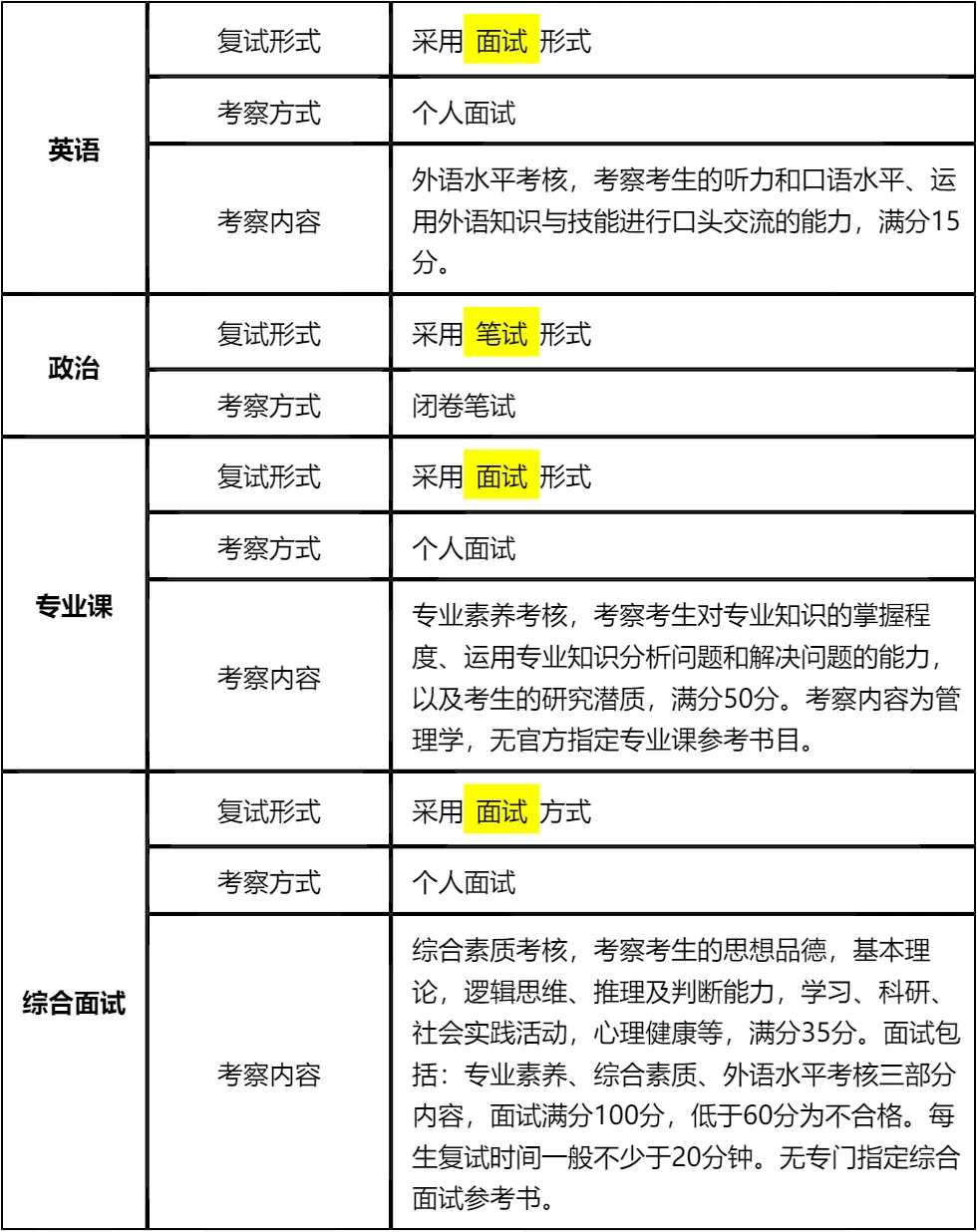 二、 各个学科的复试考察细节