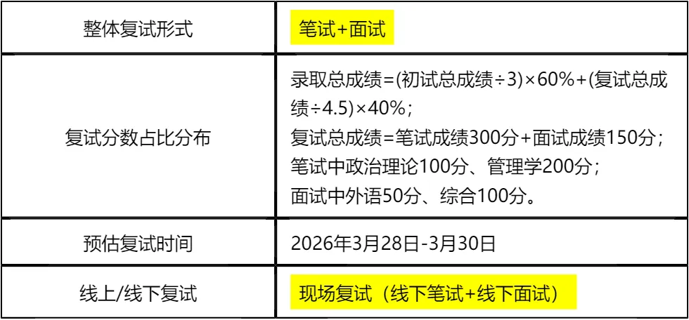客观分析一波,哈尔滨工程大学MBA非全日制复试整体淘汰率较低(6%左右),复试时间预计在 2026 年 3 月 28 日-3 月 30 日,查分时间和复试时间间隔相对紧张,所以大家需要提前筹备复试,避免出分后仓促应对。整体上复试以笔试+面试为主,其中面试形式为个人面试,需提前熟悉个面流程和答题技巧。