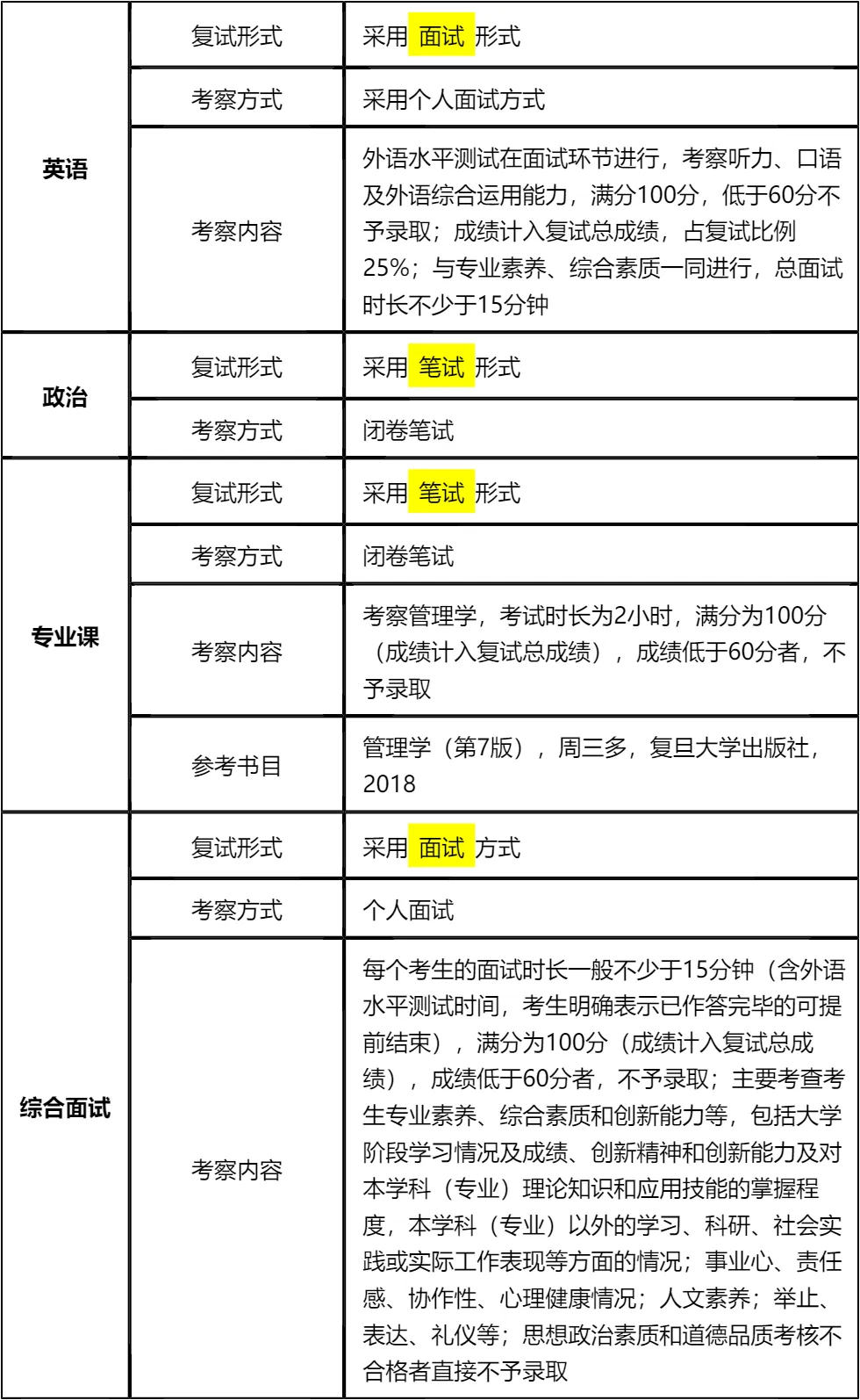 复习建议:专业课要以指定教材《管理学(第7版)》为核心,系统梳理知识点;政治笔试需提前背诵核心考点,确保及格;英语和综合面试要多练真题,熟悉考察形式和提问方向。我把真题及涵盖英语、政治、专业综合面试的全套资料都放在文末了,大家下载后重点背诵高频考点,合理规划时间高效备考,避免偏科导致某一环节不及格,文末真题和资料一定要认真对待,其实只要全面准备,上岸概率很大!!!