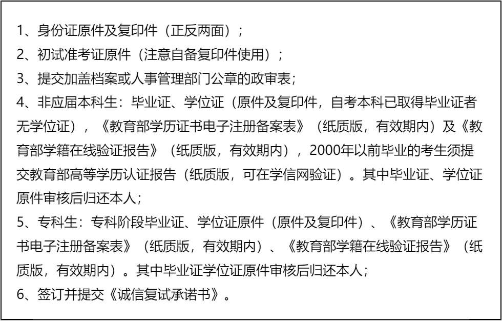 三、 复试资格审查需要准备的材料