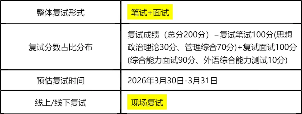 客观分析一波,贵州师范大学MBA复试整体淘汰率16%,属于中等偏上淘汰水平,复试时间预计在 2026 年 3 月 30 日-3 月 31 日,查分后备考时间有限,大家需要提前规划复习,避免临时抱佛脚。整体复试以笔试+面试为主,面试形式为个面,需重点准备个人面试的应答逻辑和技巧。