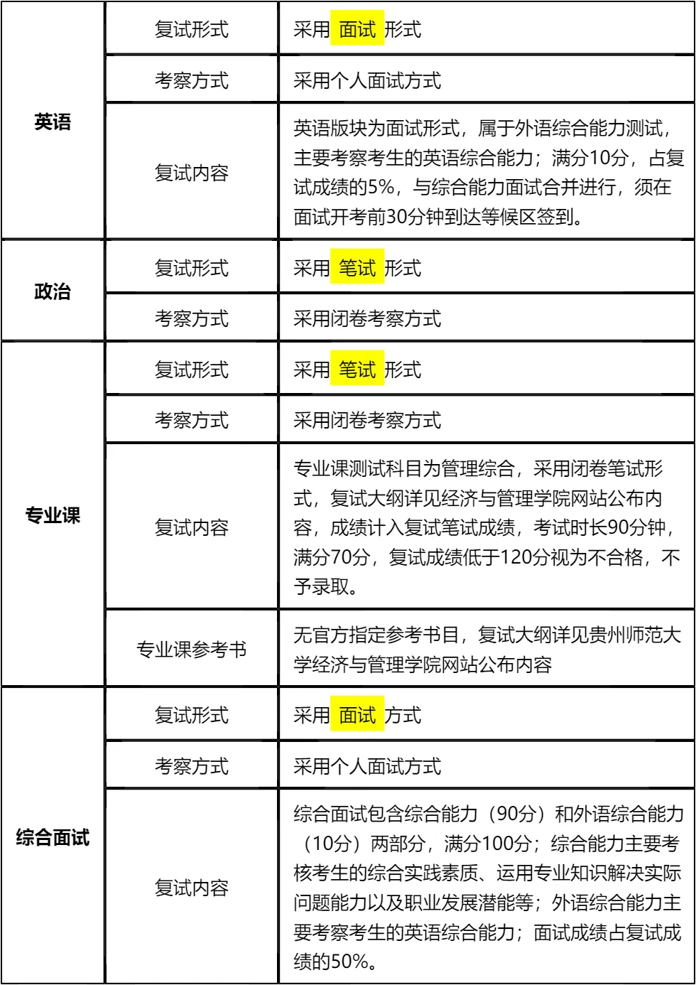 贵州师范大学MBA复试内容分析/成绩计算/资审材料