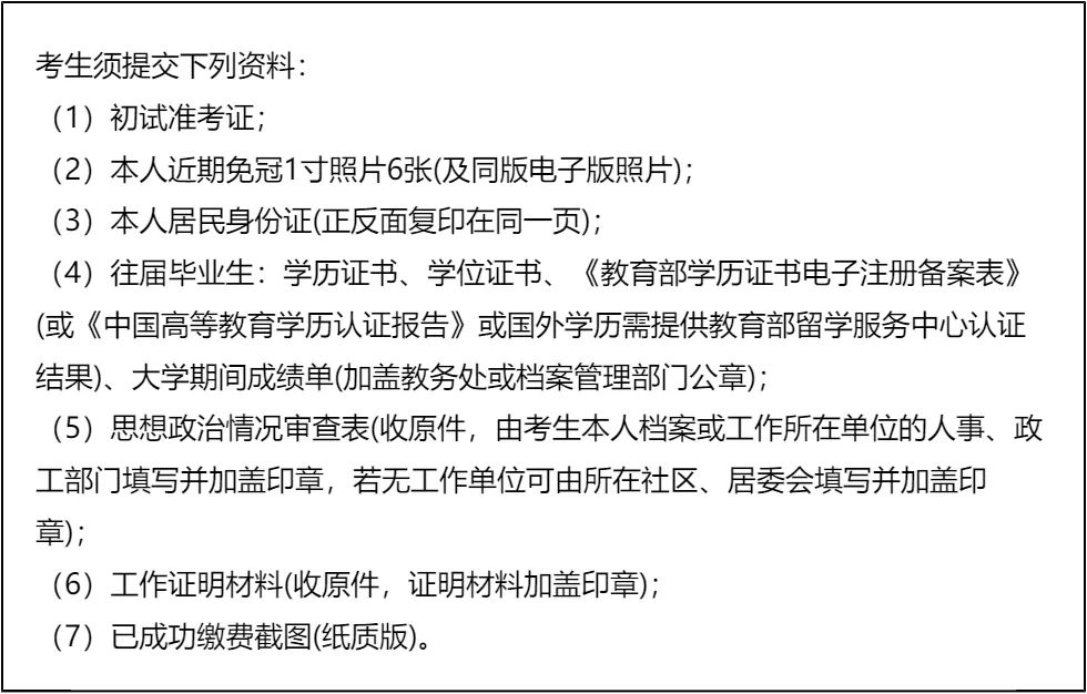 三、 复试资格审查需要准备的材料