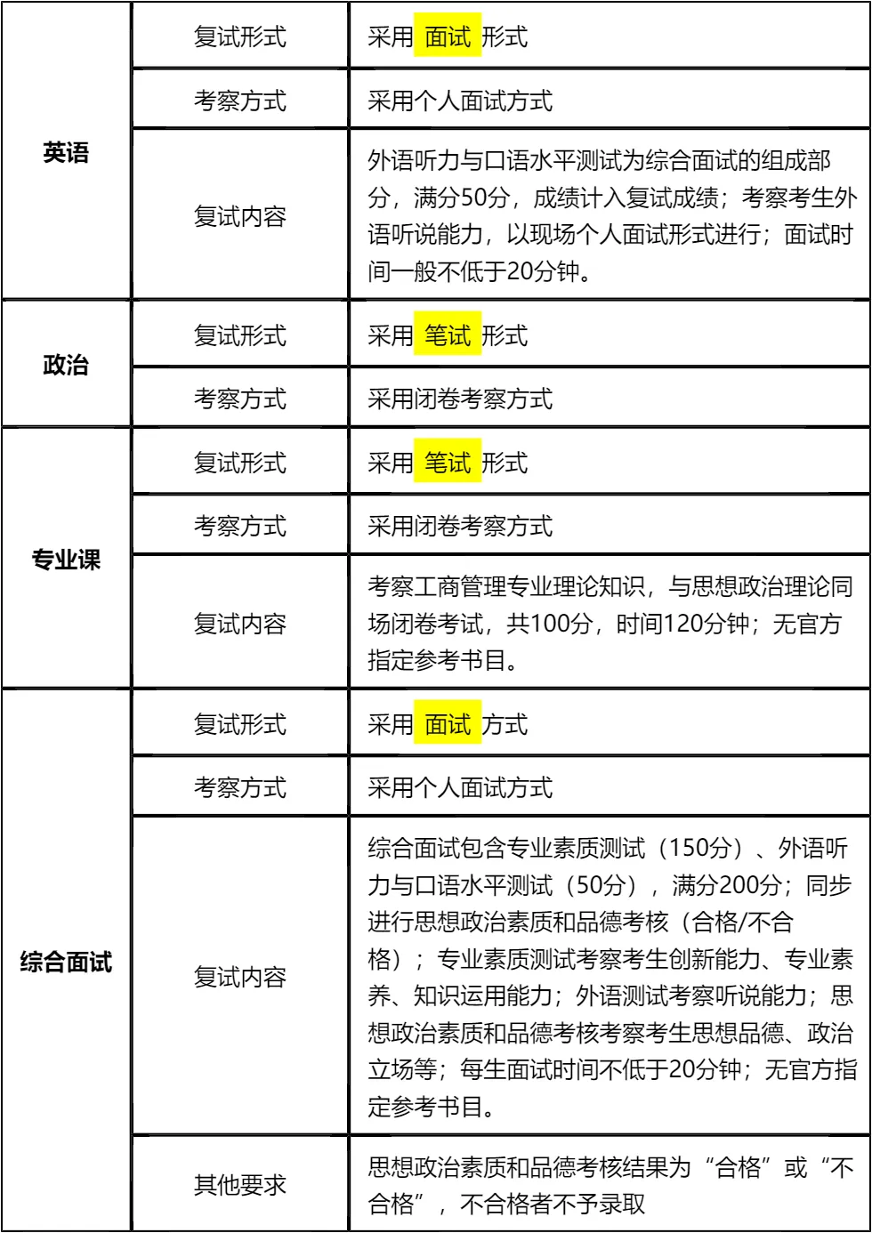 二、 各个学科的复试考察细节