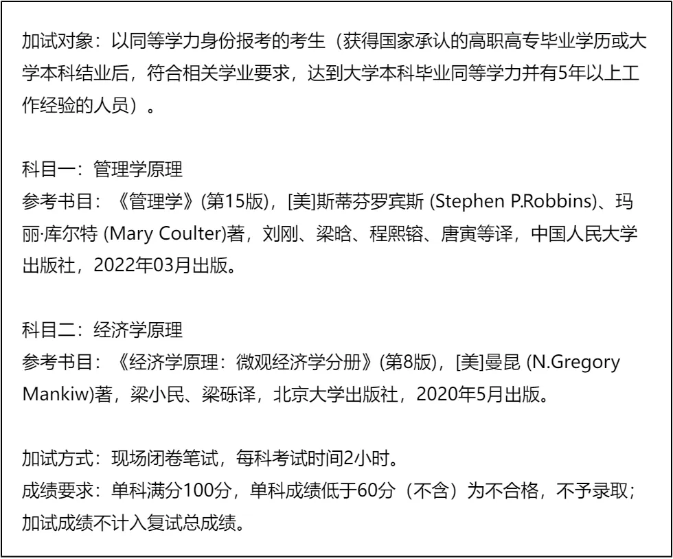 复习过程中,我遇到了很多难懂的管理学和经济学概念,经常熬夜查资料、看网课。复试前,我参加了专门的模拟加试,发现了自己的薄弱环节,针对性地进行了强化复习。正式加试时,题目大多是教材里的核心知识点,我答得比较顺利,两门科目都过了60分。