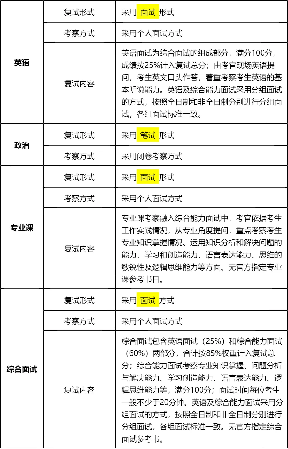 二、 各个学科的复试考察细节