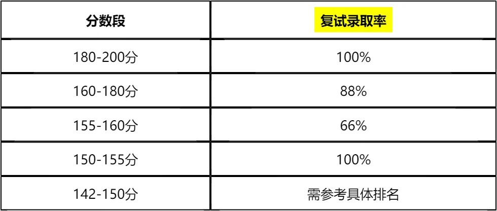 第一点,从分数段录取率来看,169分是稳录取建议分数,擦线考生(142-155分)需要在复试中脱颖而出才能提高录取概率。复试成绩占比中,综合能力测试和无领导小组讨论占比高达90%,是复试的重中之重,必须重点投入时间准备。