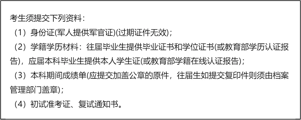 三、 复试资格审查需要准备的材料
