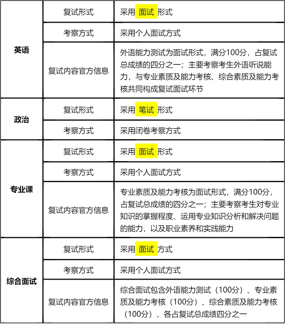 二、 各个学科的复试考察细节