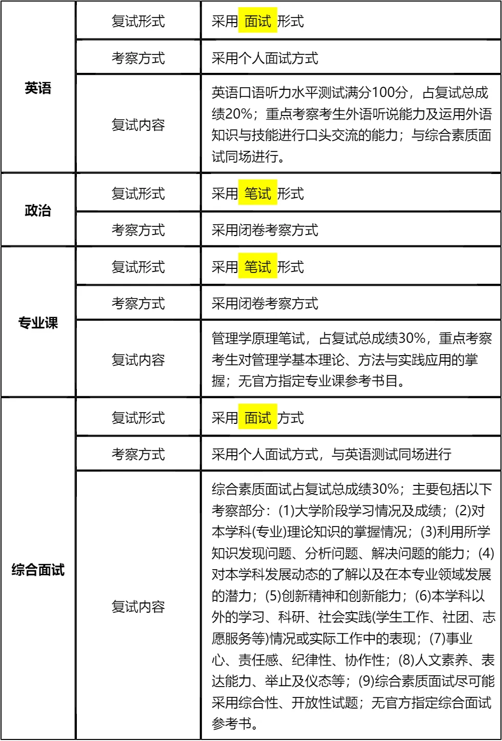 复试当天,政治和专业课笔试的题目大多是资料里涉及的重点,答题很顺利。面试时,考官的问题也比较常规,比如“考MBA的核心原因”“未来职业规划”等,都是我提前准备过的。英语面试虽然有点紧张,但还是顺利完成了交流。最终成功上岸,真的很感谢这份复试资料,帮我少走了很多弯路。建议大家一定要利用好真题和核心资料,有针对性地备考。
