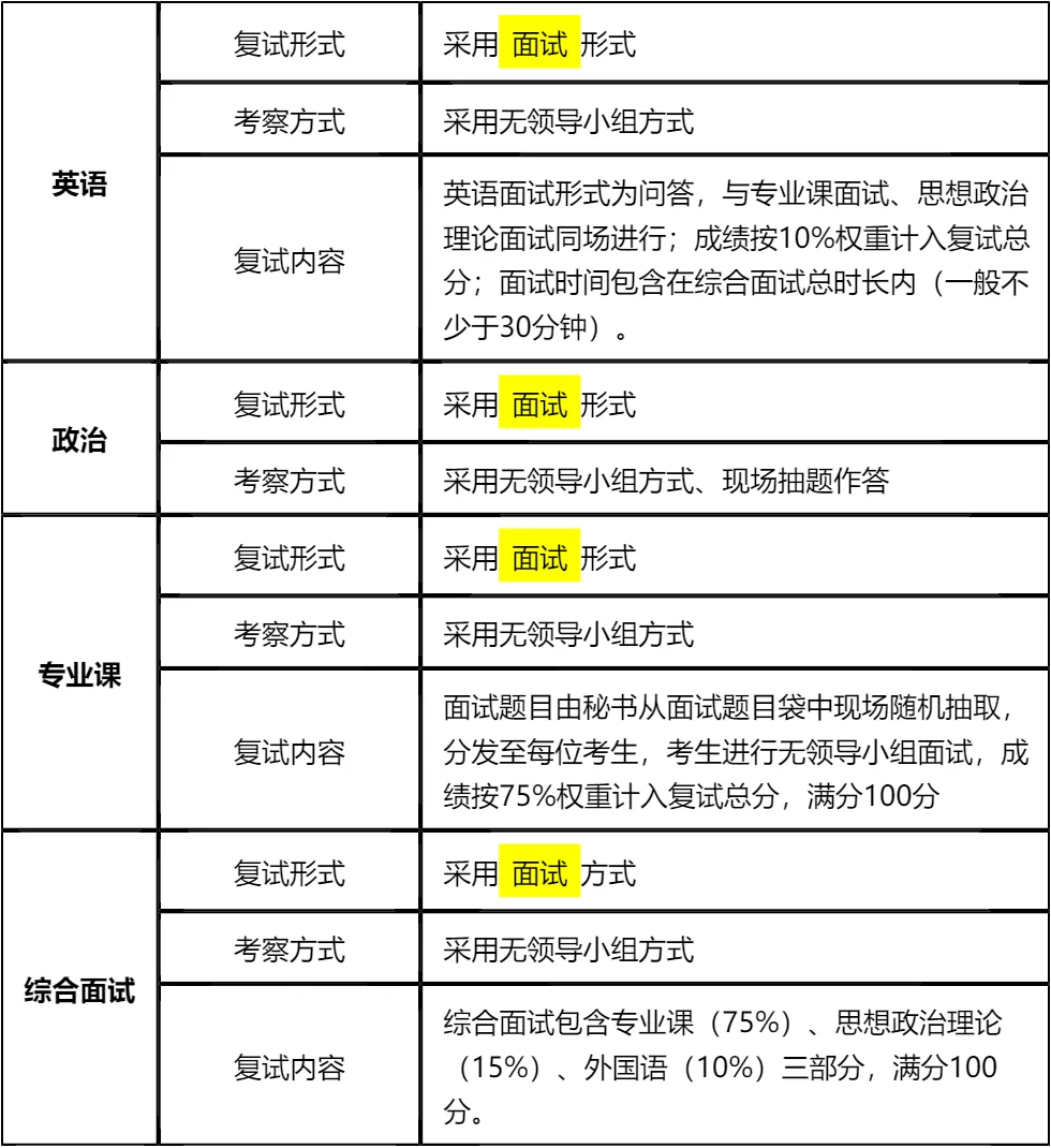 二、 各个学科的复试考察细节