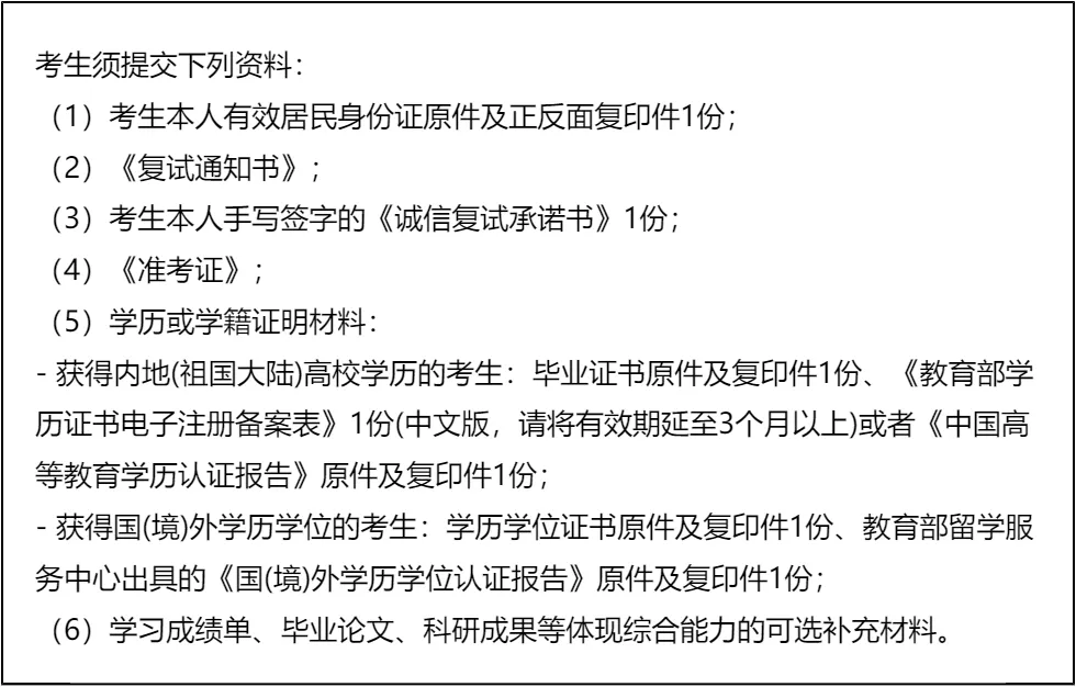 三、 复试资格审查需要准备的材料