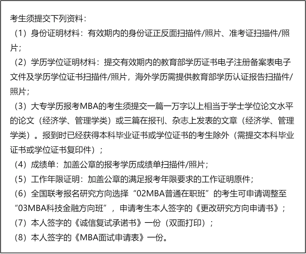 三、 复试资格审查需要准备的材料
