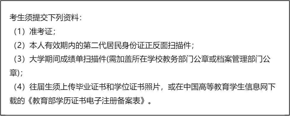 三、 复试资格审查需要准备的材料