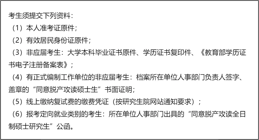 三、 复试资格审查需要准备的材料