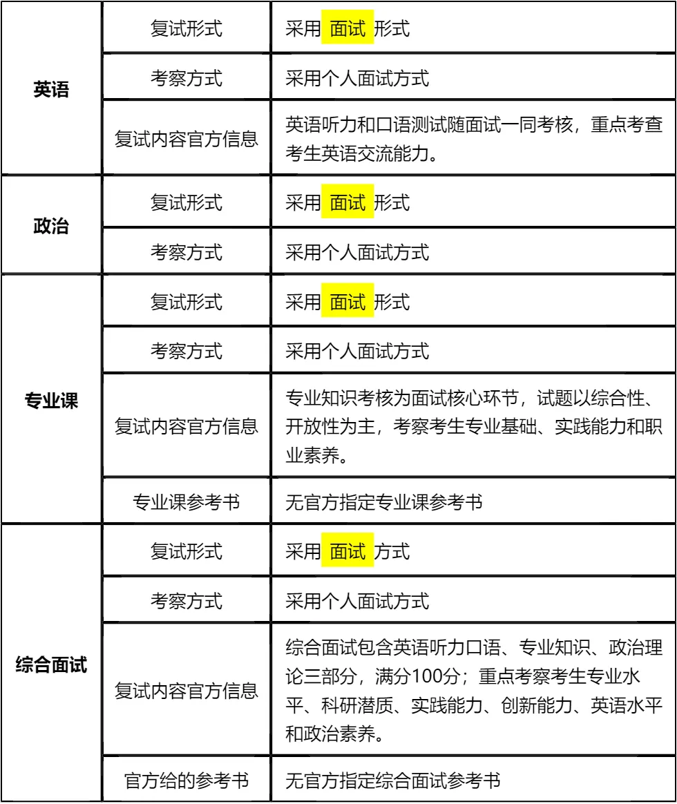 二、 各个学科的复试考察细节