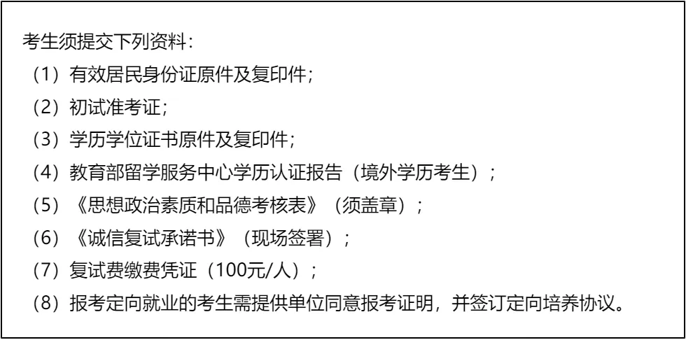 三、 复试资格审查需要准备的材料