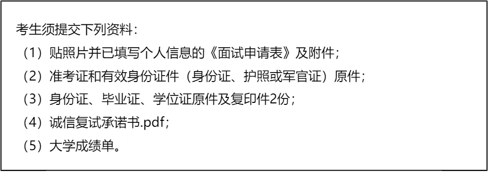三、 复试资格审查需要准备的材料