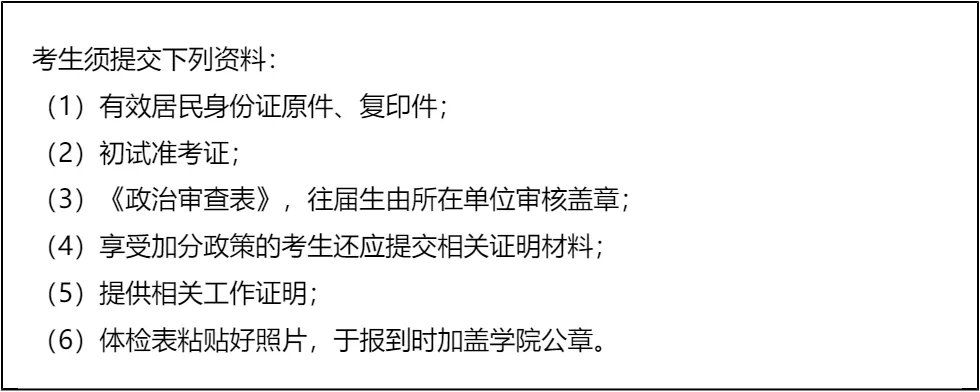 三、 复试资格审查需要准备的材料