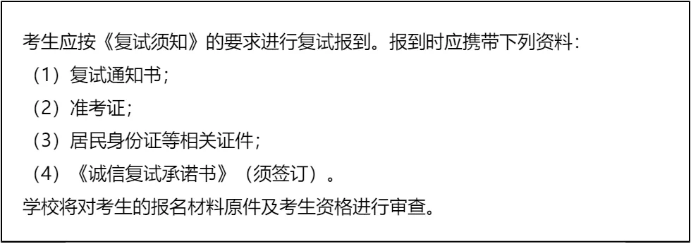 三、 复试资格审查需要准备的材料
