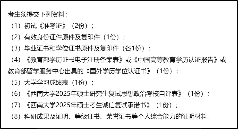 三、 复试资格审查需要准备的材料