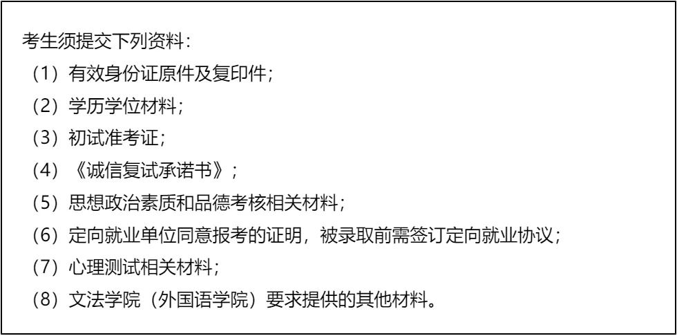 三、 复试资格审查需要准备的材料