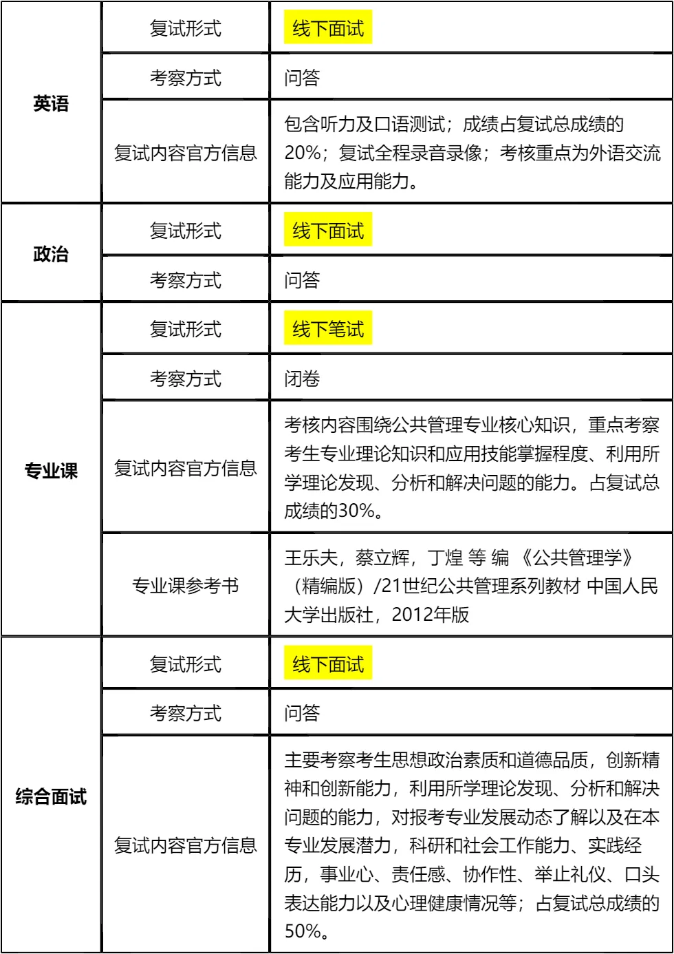 其次,专业课笔试是闭卷形式,《公共管理学》(2012版)是核心参考书,必须逐章研读,重点记忆公共管理的核心概念、理论模型和实践应用。英语面试侧重交流能力,不用追求复杂句式,保证表达流畅、逻辑清晰即可,提前准备自我介绍、择校理由等高频话题模板。