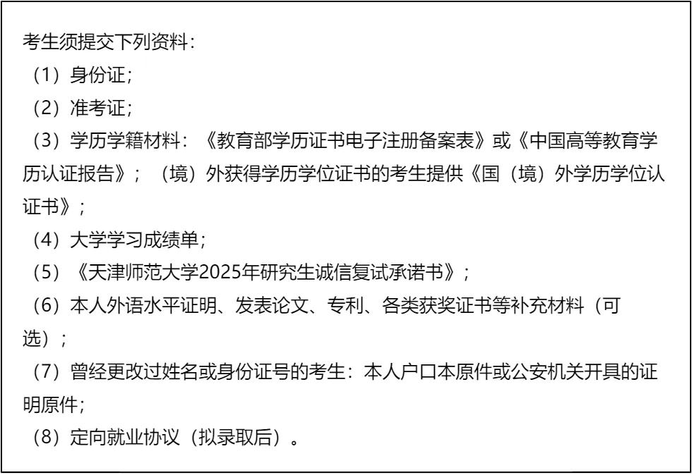 三、 复试资格审查需要准备的材料