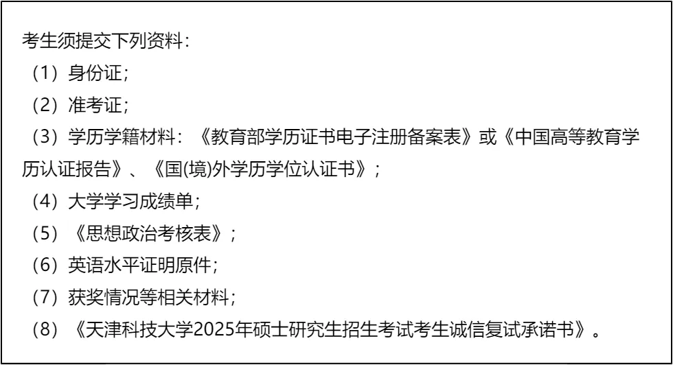 三、 复试资格审查需要准备的材料