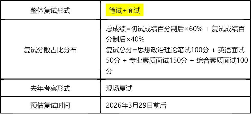 复习建议:从分数段录取率来看,197分以上稳录概率极高,160-180分段录取率仅50%,擦线考生需重点突破复试。真题是核心复习资料,我把涵盖英语、政治、专业课、综合面试的高频真题都放在文末了,建议优先背诵掌握,集中10-15天强化训练即可覆盖核心考点。复试考察内容较全面,需兼顾政治笔试背诵、英语口语练习和专业知识储备,重点突破薄弱环节,避免偏科导致复试失利!
